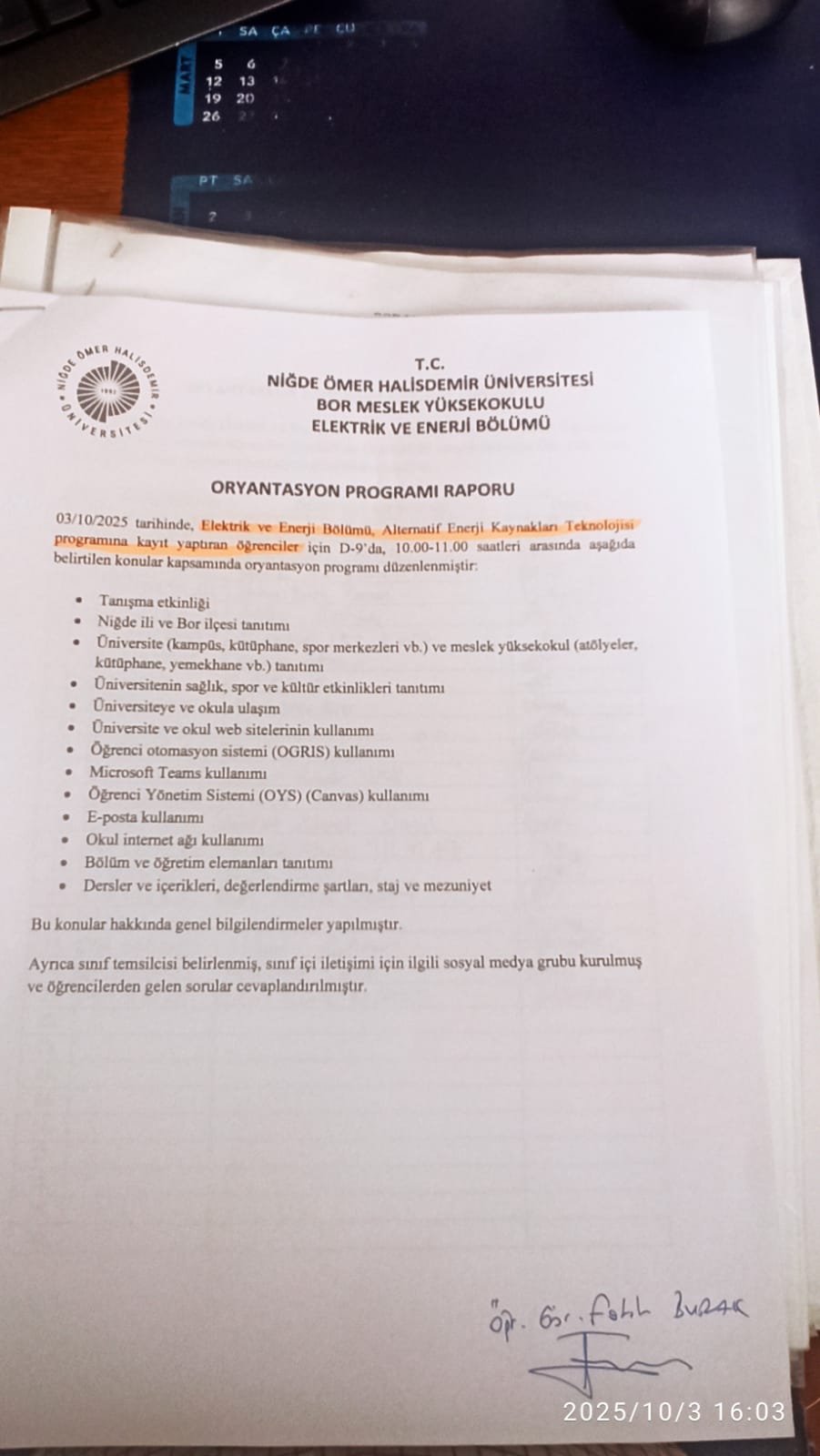 Instructor Fatih BURAK introduced our University, School, and Department to our first-year students who registered for our program in the Fall Semester of the 2025-2026 Academic Year, and provided information about the course passing system and other issues of interest to our students.