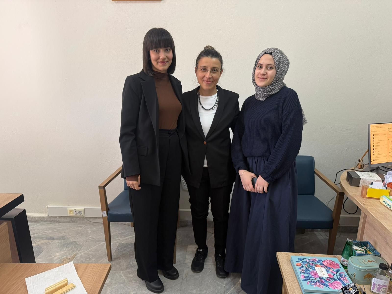Fakültemiz Fizyoterapi ve Rehabilitasyon bölümü öğrenci temsilcisi Kübra Göçer ve Beslenme ve Diyetetik bölümü öğrenci temsilcisi Süreyya Yılmaz, Dekan Yardımcısı Feyza Altındal Karabulut ile bir araya gelerek öğrencilerin talep, istek, beklentileri hakkında görüşme yapmışlardır.