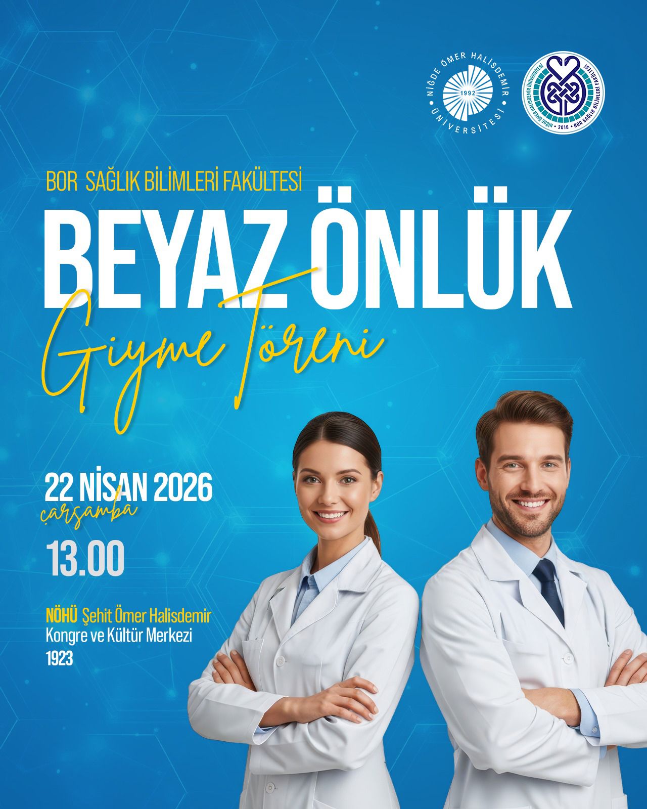 Fakültemiz tarafından düzenlenen 2025-2026 Eğitim-Öğretim Yılı Beyaz Önlük Giyme Töreni, 22 Nisan 2026 Çarşamba günü saat 13.00’te NOHÜ Şehit Ömer Halisdemir Kongre ve Kültür Merkezi’nde gerçekleştirilecektir.