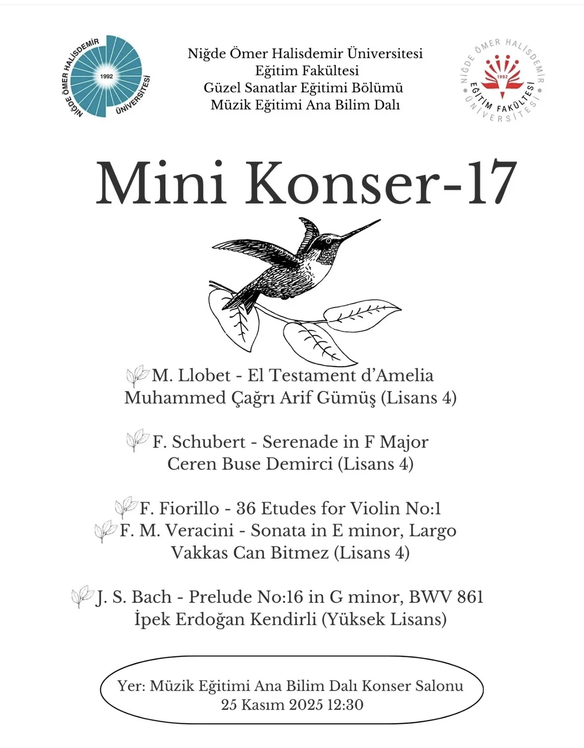 Mini Konser - 17 Etkinlik Ayrıntıları Etkinlik Adı: Mini Konser - 17 Etkinlik Tarihi: 25.11.2025 - 25.11.2035 Etkinlik Türü: Konser Son Güncelleme Tarihi : 03.12.2025