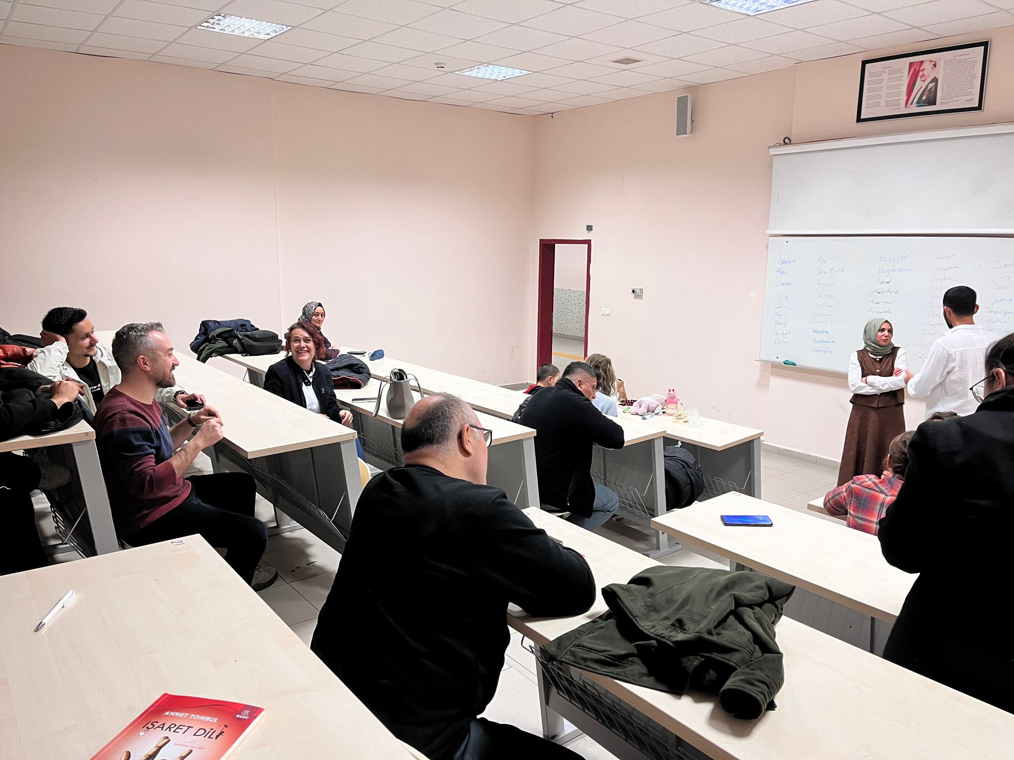 Niğde Ömer Halisdemir Üniversitesi bünyesinde çalışan personele yönelik düzenlenen İşaret Dili Kursu, tüm hızıyla devam ederken bugünkü dersin çok özel konukları vardı. Personelin iletişim becerilerini geliştirmek ve engelsiz bir çalışma ortamı sağlamak amacıyla düzenlenen eğitimde, bu kez işaretler minik misafirler için yapıldı.