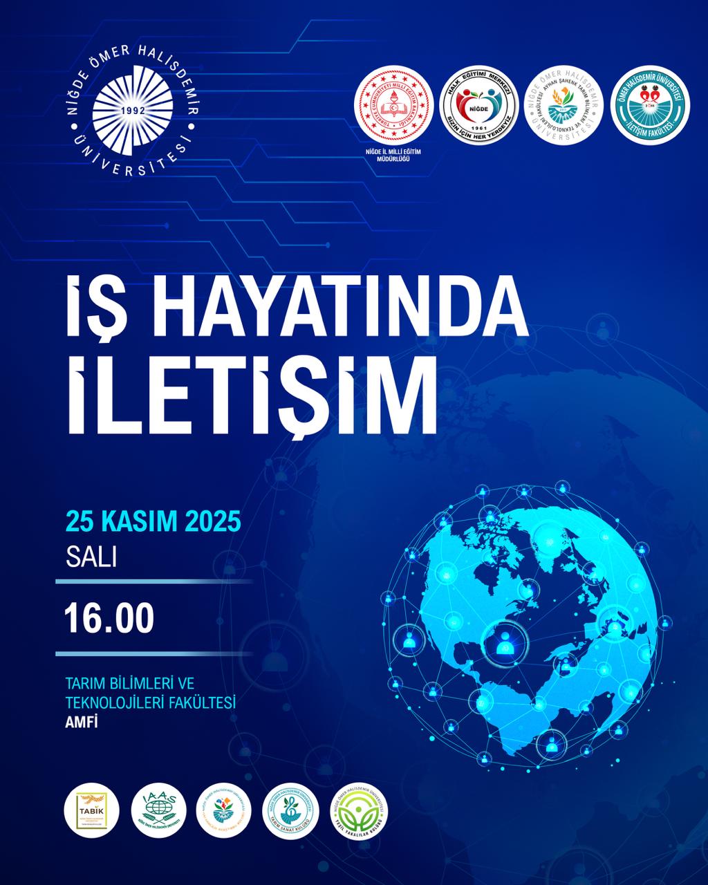 İş Hayatında İletişim Etkinlik Ayrıntıları Etkinlik Adı: İş Hayatında İletişim Etkinlik Tarihi: 25.11.2025 - 25.11.2025 / 16:00 Etkinlik Türü: Konferans Etkinlik Yeri: Tarım Bilimleri ve Teknolojileri Fakültesi Tarım Bilimleri ve Teknolojileri Fakültesi Son Güncelleme Tarihi : 25.11.2025