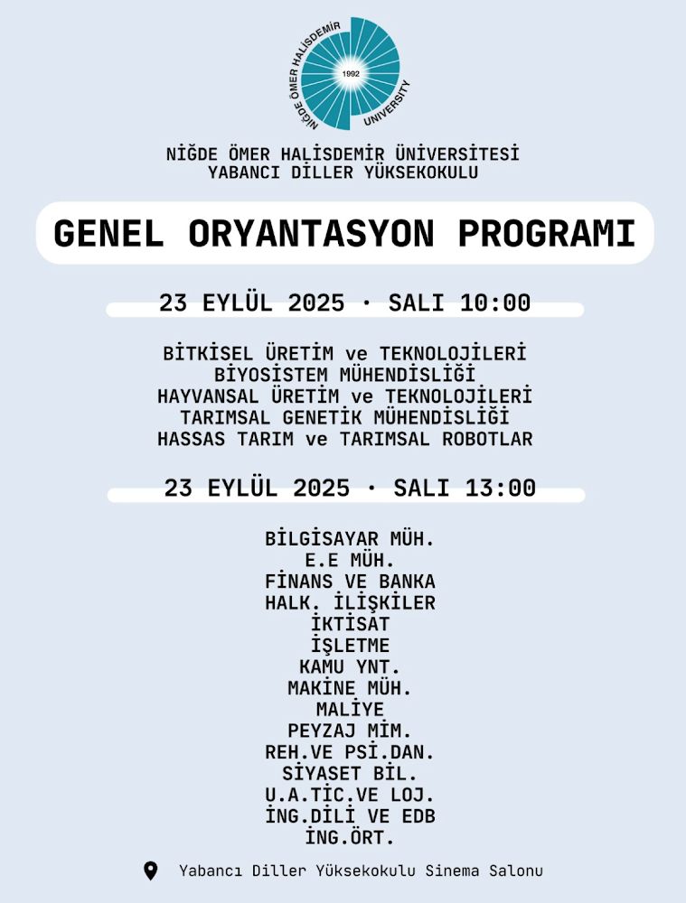 Genel Oryantasyon Programı Event Details Events Name: Genel Oryantasyon Programı Events Date: 23.09.2025 - 25.03.2027 Events Type: Events Latest Update : 20.11.2025