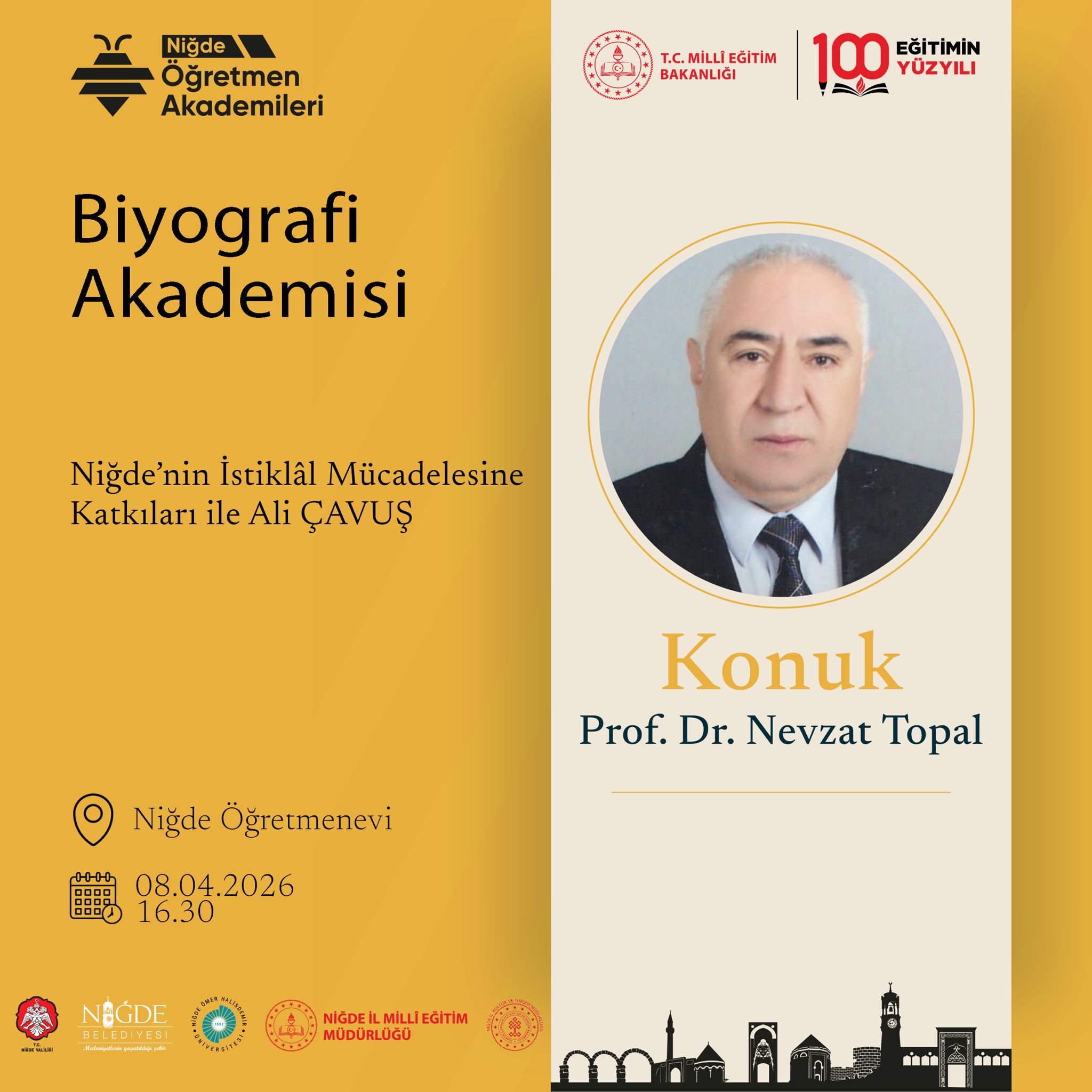 Niğde'nin İstiklal Mücadelesine Katkıları ile Ali ÇAVUŞ Etkinlik Ayrıntıları Etkinlik Adı: Niğde'nin İstiklal Mücadelesine Katkıları ile Ali ÇAVUŞ Etkinlik Tarihi: 08.04.2026 - 30.04.2027 Etkinlik Türü: Bilimsel Etkinlikler Son Güncelleme Tarihi : 09.04.2026