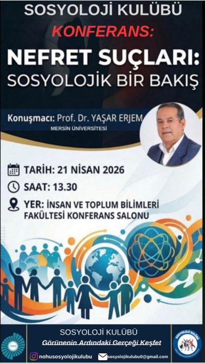 Nefret Suçları:Sosyolojik Bir Bakış Etkinlik Ayrıntıları Etkinlik Adı: Nefret Suçları:Sosyolojik Bir Bakış Etkinlik Tarihi: 21.04.2026 - 30.04.2027 Etkinlik Türü: Bilimsel Etkinlikler Son Güncelleme Tarihi : 22.04.2026