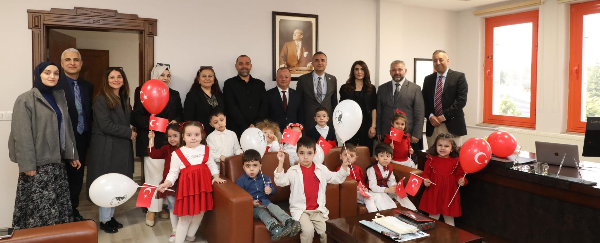 Peyzaj Mimarlığı Bölüm Başkanı Dr. Öğr. Üyesi Barış KAHVECİ’yi makamlarında ziyaret ettiler. Ziyaret sırasında çocuklar temsili olarak yöneticilerin makam koltuklarına oturarak bayram coşkusunu deneyimlediler.