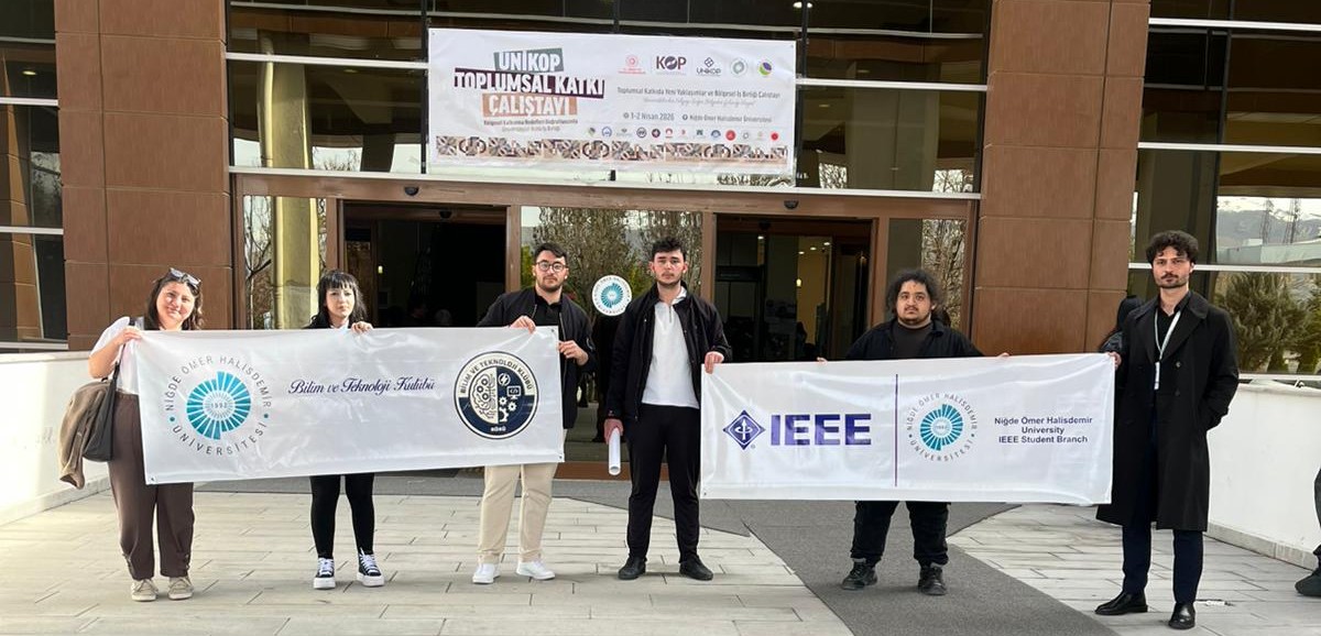 Elektrik-Elektronik Mühendisliği Bölümü, Bilgi Teknolojileri Kulübü ve Niğde Ömer Halisdemir Üniversitesi IEEE Öğrenci Kolu öğrencilerimiz, 1–2 Nisan 2026 tarihlerinde Şehit Ömer Halisdemir Kongre ve Kültür Merkezi'nde düzenlenen UNİKOP Toplumsal Katkı Çalıştayı'na katılarak TÜBİTAK 2209-A ve 2209-B destek programları kapsamındaki projelerini tanıttılar.