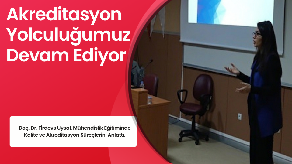 Bölümümüz öğretim üyelerinden Doç. Dr. Firdevs Uysal tarafından, “Mühendislik Eğitiminde Kalite ve Akreditasyon” başlıklı bir sunum gerçekleştirilmiştir. Sunumda, mühendislik eğitiminde kalite güvencesi süreçleri, akreditasyonun önemi ve programların sürdürülebilir gelişimine katkı sağlayan temel yaklaşımlar ele alınmıştır. Ayrıca, MÜDEK başta olmak üzere akreditasyon sistemlerinin eğitim-öğretim faaliyetlerine etkileri ve program çıktılarının izlenmesi sürecindeki rolü detaylı olarak paylaşılmıştır.