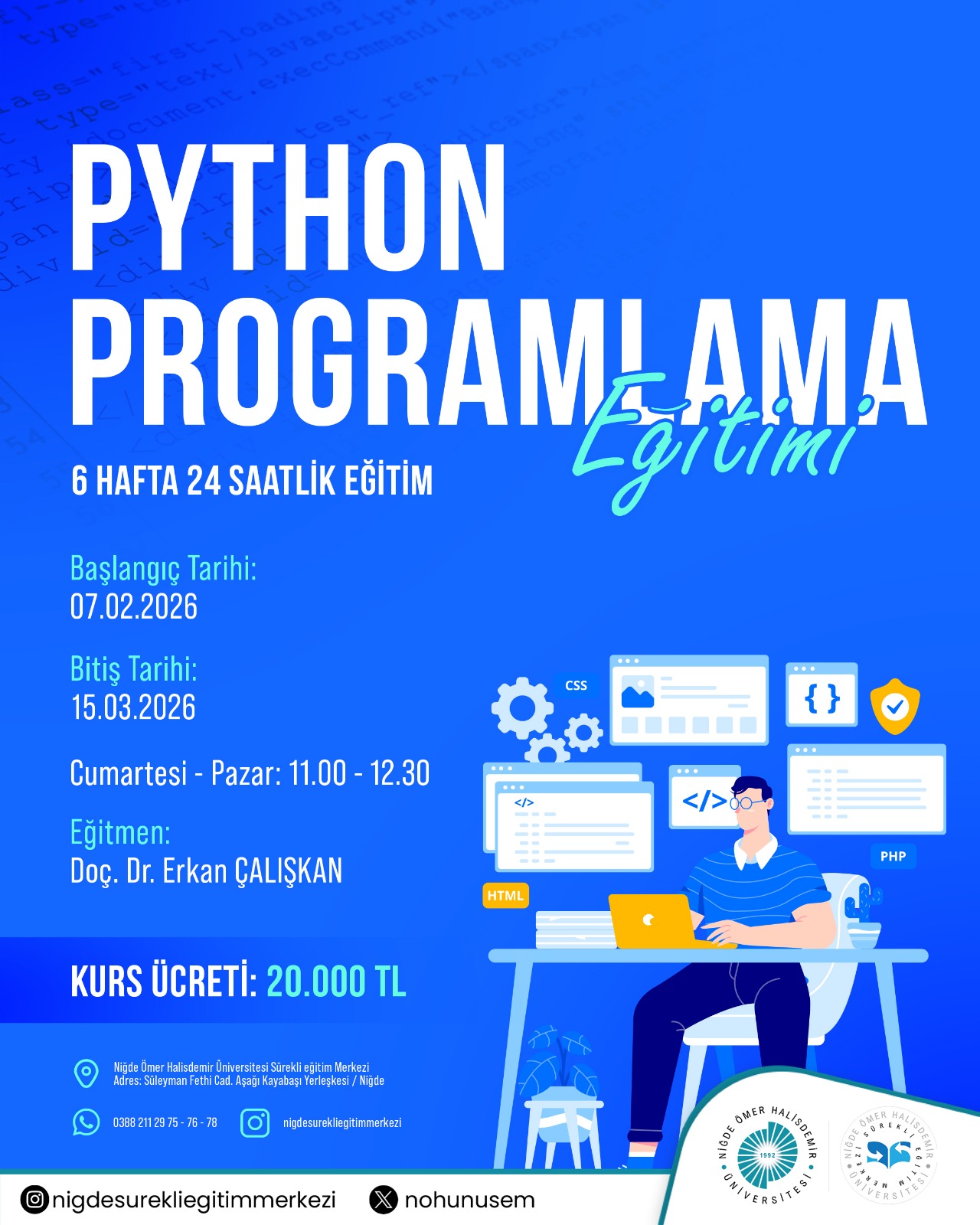 PYTHON PROGRAMLAMA EĞİTİMİ Duyurular 29.12.2025 PYTHON PROGRAMLAMA EĞİTİMİONLİNE KAYIT İÇİN TIKLAYINIZ Son Güncelleme Tarihi : 29.12.2025