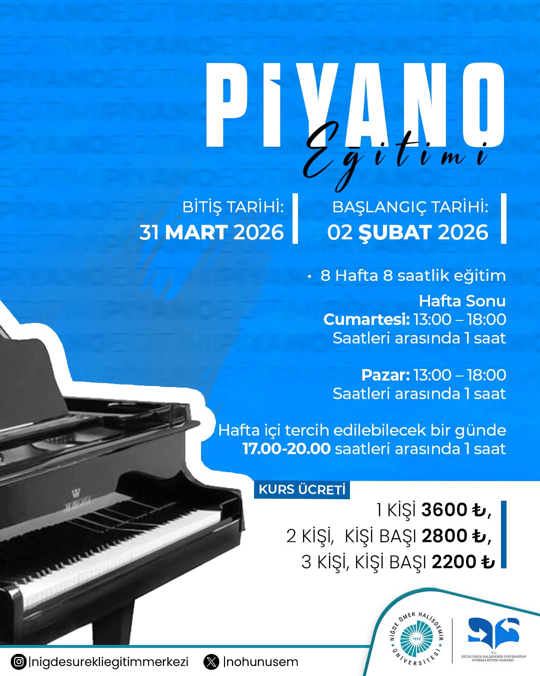 PİYANO EĞİTİMİ Duyurular 03.12.2025 PİYANO EĞİTİMİONLİNE KAYIT İÇİN TIKLAYINIZ Son Güncelleme Tarihi : 04.12.2025