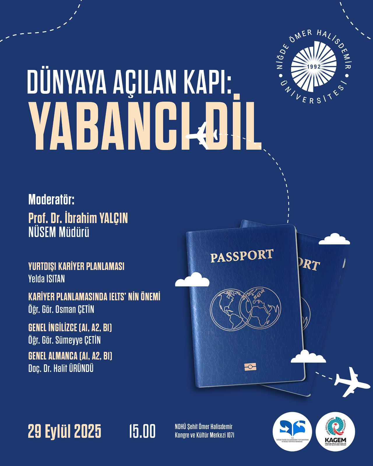 DÜNYAYA AÇILAN KAPI: YABANCI DİL Etkinlik Ayrıntıları Etkinlik Adı: DÜNYAYA AÇILAN KAPI: YABANCI DİL Etkinlik Tarihi: 29.09.2025 - 29.09.2025 Etkinlik Türü: Panel BİRİMİMİZ (NÜSEM) VE KAGEM ORTAKLIĞINDA "DÜNYAYA AÇILAN KAPI: YABANCI DİL" KONULU PANEL DÜZENLECEKTİR.PANEL HAKKINDA BİLGİ İÇİN TIKLAYANIZ. Son Güncelleme Tarihi : 22.09.2025