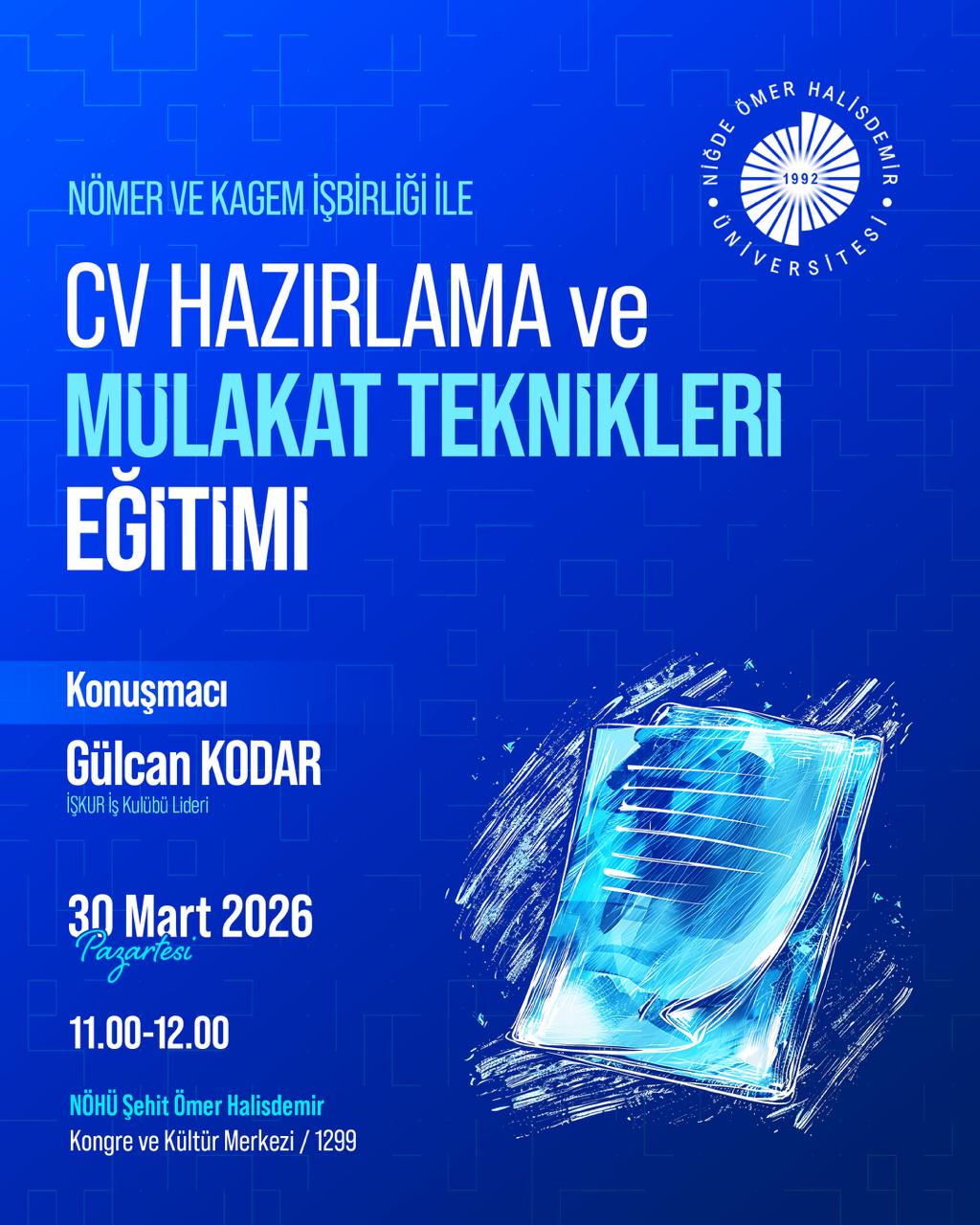 saatleri arasında üniversitemiz öğrencilerine yönelik "CV Hazırlama ve Mülakat