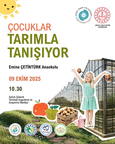 Niğde Ömer Halisdemir Üniversitesi, Niğde İl Milli Eğitim Müdürlüğü ve Fakültemiz iş birliği ile tarımda bilinçli nesiller yetiştirmek için "Çocuklar Tarımla Buluşuyor" etkinliği düzenlenecektir.