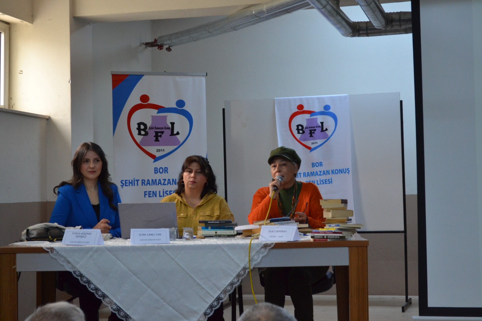 Bor Şehit Ramazan Konuş Fen Lisesinde düzenlenen “Düş ve Düşüncenin Reçetesi: İyileştiren Kütüphane” başlıklı panelde, Eğitim Fakültesi Türkçe Eğitimi Anabilim Dalı öğretim üyeleri Dr. Öğr. Üyesi Suna Canlı Can, Dr. Öğr. Üyesi Yonca Koçmar Demirci ve eğitimci-yazar Ülkü Demiray konuşmacı olarak yer aldı.
