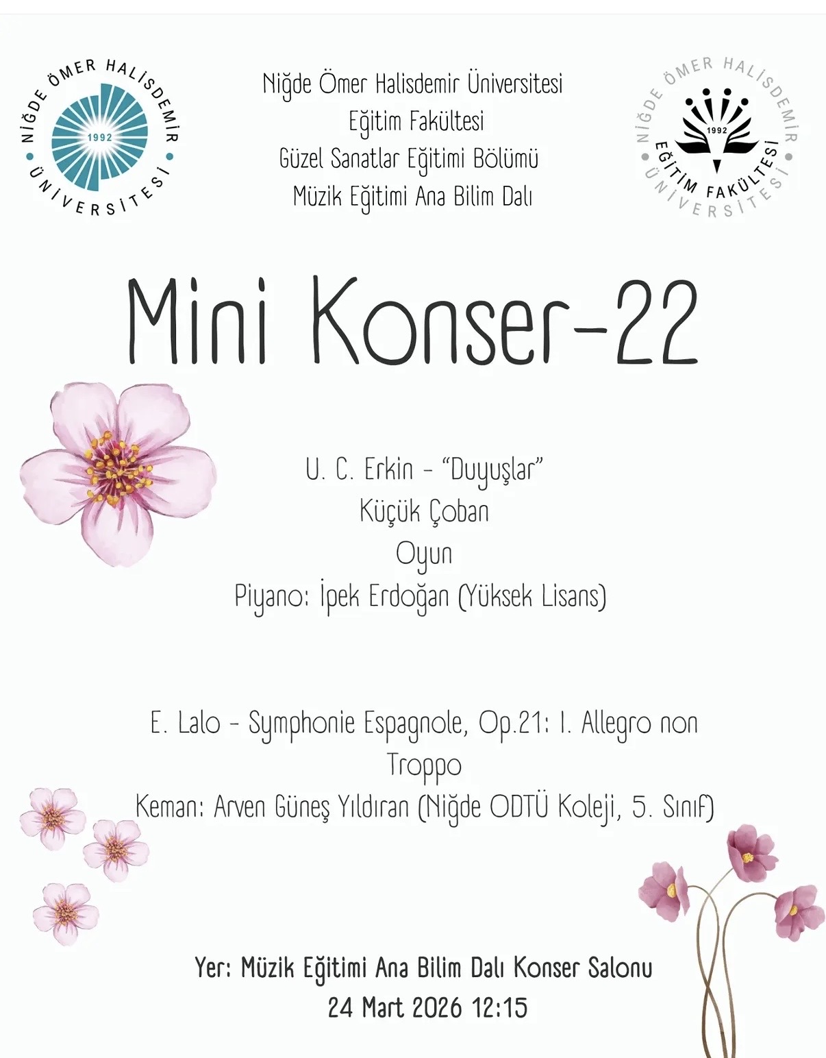 Mini Konser - 22 Etkinlik Ayrıntıları Etkinlik Adı: Mini Konser - 22 Etkinlik Tarihi: 24.03.2026 - 24.03.2036 Etkinlik Türü: Konser Son Güncelleme Tarihi : 03.04.2026