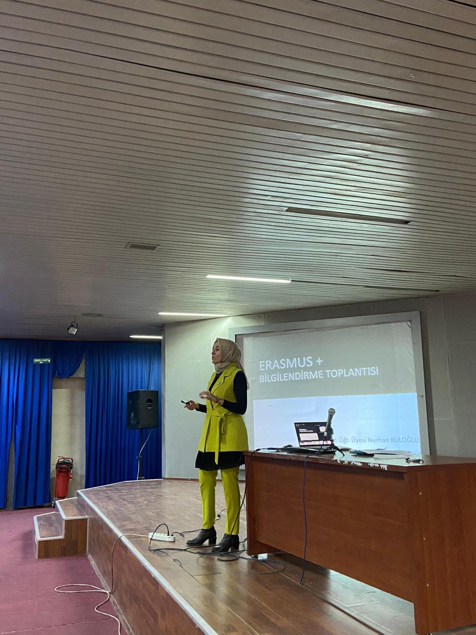 Erasmus Koordinatörü Dr. Öğr. Üyesi Nurhan KULOĞLU Programımız öğrencilerine yönelik Erasmus+Öğrenci Öğrenim ve Staj Hareketliliği hakkında 27.11.2025 tarihinde bilgilendirme toplantısı yapıp; Ayrıca Erasmus+Öğretim Elemanı hareketliliğinden yararlanan bir akademisyen olarak, yurt dışındaki akademik işleyişe, kurumlar arası iş birliğine, ders verme süreçlerine ve uluslararası akademik kültüre ilişkin edinmiş olduğu tecrübe ve deneyimleri paylaştığı sunumunu gerçekleştirmiştir.
